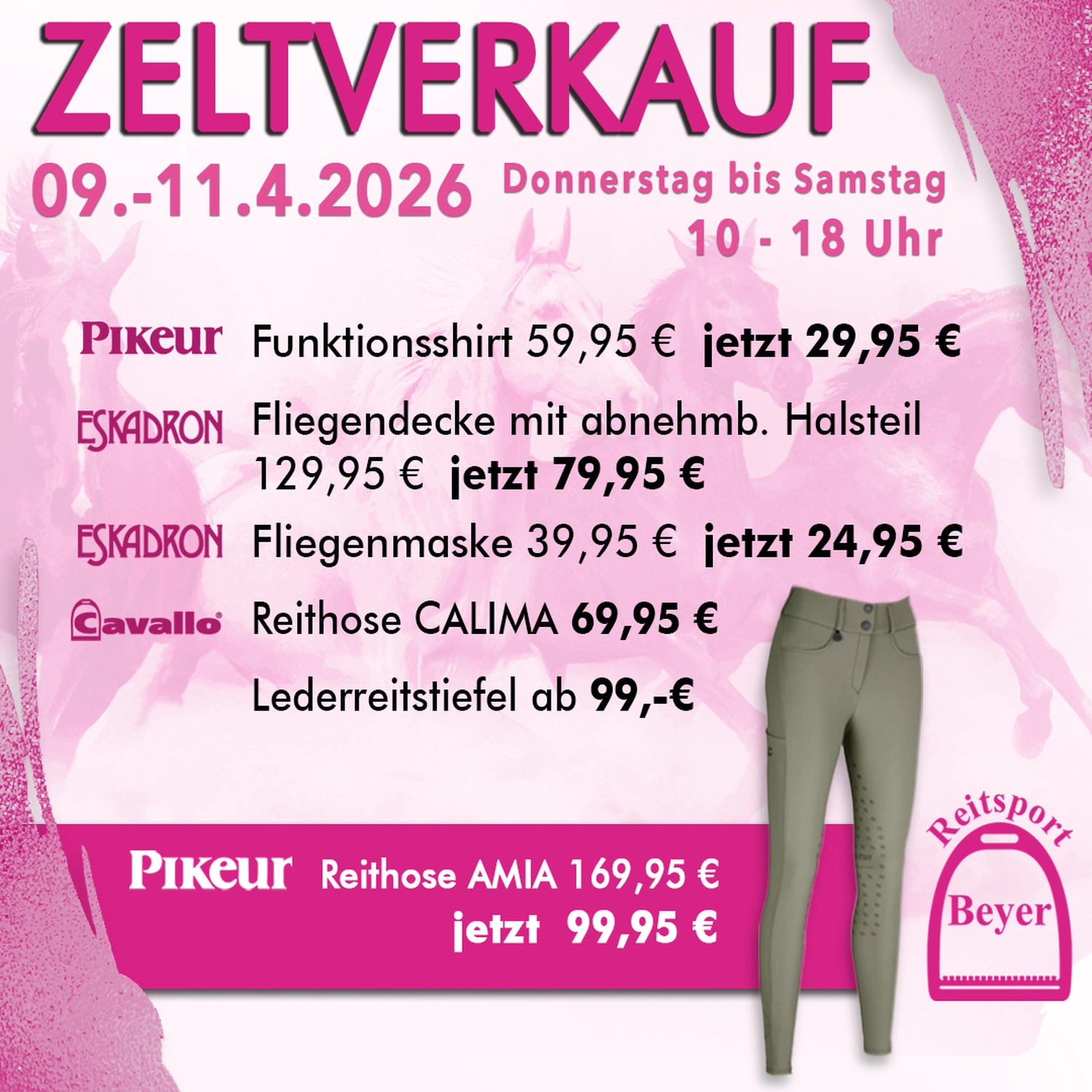 Seit 30 Jahren schon, steht der Name „Reitsport Beyer“ für alles, was mit Reitsport zu tun hat. Wir bieten Ihnen nicht nur ein umfangreiches Sortiment den verschiedensten Markenartikeln bei Mode & Accessoires, sondern auch einen umfangreichen Service.